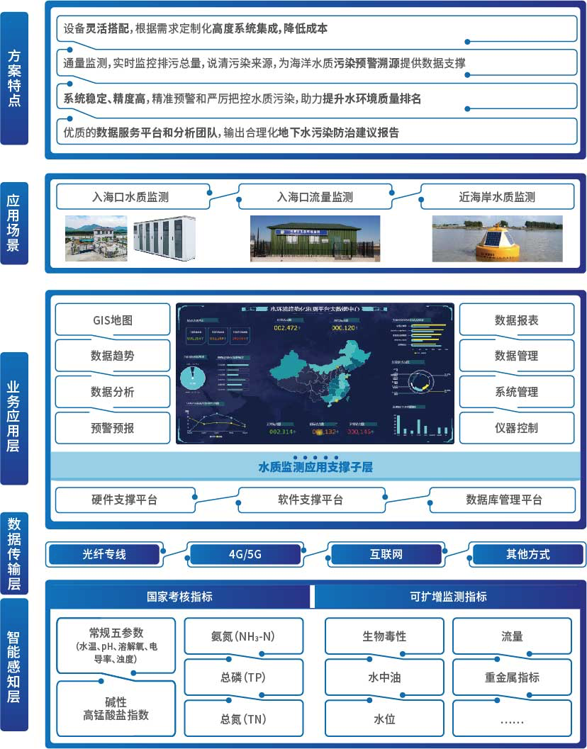 該系統可應用于近海海域、入??诘拳h境水質監測,可及時、準確地反映水質現狀及變化趨勢,為水體環境監測、預警、管理、規劃等提供準確的實時數據。