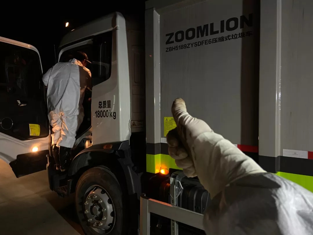 漢川市城市管理局應對疫情,緊急采購多臺無泄漏壓縮式垃圾車,并且急需培訓后投入使用。孝感市是除武漢外第二嚴重疫區,盈峰環境服務站長蔣篤,銷售經理韓艦峰主動請纓,星夜奔赴湖北疫區。凌晨,公司與客戶在高速路口順利完成車輛交付及人員培訓工作。