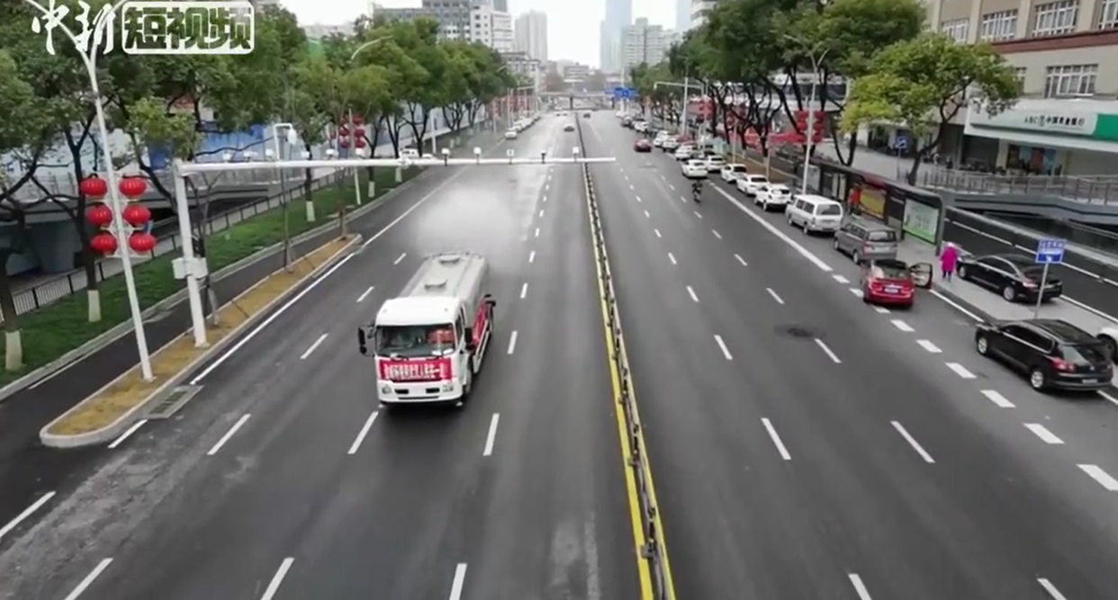 中新網報道:盈峰環境清潔消毒車上路 助力武漢環衛消殺工作