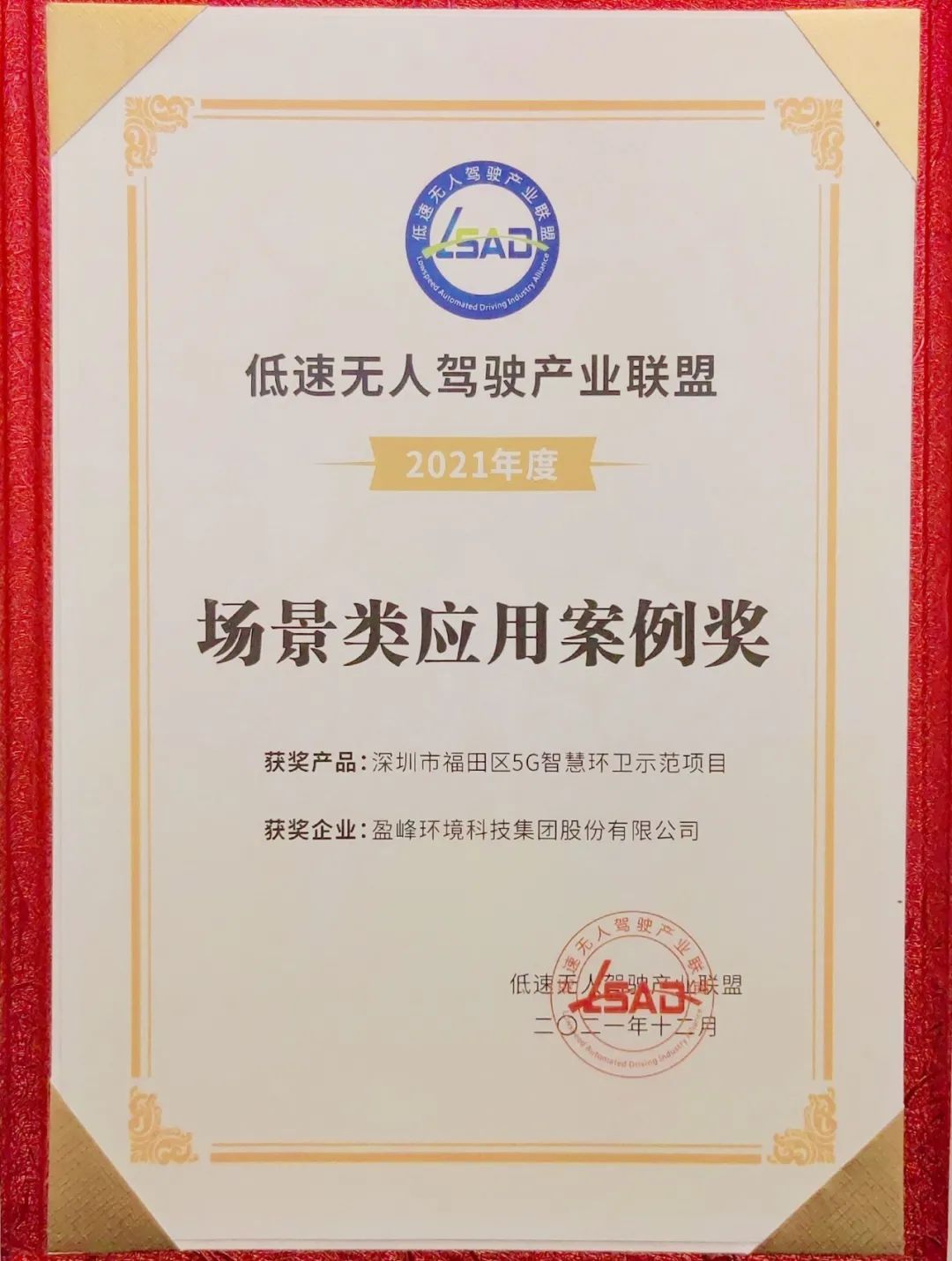 此次評(píng)選活動(dòng)共有上百家企業(yè)提交參選材料,60余家企業(yè)產(chǎn)品/項(xiàng)目進(jìn)入公眾和專家評(píng)審環(huán)節(jié)。盈峰環(huán)境“深圳市福田智慧5G項(xiàng)目”憑借環(huán)衛(wèi)領(lǐng)域最前沿的智慧場(chǎng)景應(yīng)用,于公眾評(píng)選和專家評(píng)審環(huán)節(jié)中脫穎而出,榮獲“創(chuàng)新應(yīng)用案例(場(chǎng)景類)”獎(jiǎng)。LSAD產(chǎn)業(yè)聯(lián)盟第一屆理事會(huì)中,公司當(dāng)選副理事長(zhǎng)單位,盈峰環(huán)境副總裁、首席技術(shù)官兼中央研究院院長(zhǎng)張斌博士當(dāng)選首屆LSAD產(chǎn)業(yè)聯(lián)盟副主席。