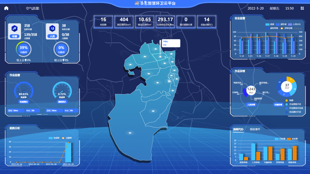智慧環衛云平臺是此次評選方案中的核心部分,由盈峰環境自主研發,匯集了全球智慧融合“大云物移智”技術,擁有超20項軟件著作權,涵蓋了“智慧環衛、智慧城管、智慧分類、智慧餐廚、智慧市政、智慧園林、智慧物業、智慧公廁”等八大軟件產品和行業解決方案,能夠實現對項目運營所涉及到的“人、車、物、事”構建“全時段、全方位、前后臺無縫對接、精準高效” 的運維服務和遠程監控管理模式,可以為環衛服務提供市場化、產業化、網聯化、數字化運營提供技術方案和解決方案。當前,智云平臺已服務全國環衛系統的380余個項目,為全國環衛產業科技變革、新業態打造不斷注入新動能。