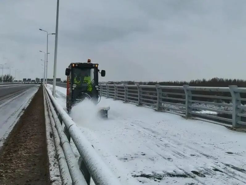 26日0點0時,撫順項目在風雪寒夜中啟動抗冰除雪“零點行動”,近700人嚴陣以待,73臺除雪車輛整裝待發,以雪為令、聞雪而動,主干道大型除雪車火力全開,快速清除路面積雪;輔道和狹窄路段運用小型手扶式掃雪機高效清理,連續奮戰15小時,疏通道路140公里,清除積雪1500余噸,保障道路暢通無阻。