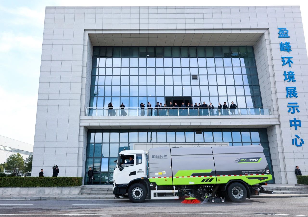 考察團一行觀看了盈峰環境高端環衛裝備演示。盈峰環境自主研發產品型譜涵蓋了清掃保潔、路面清洗、垃圾收轉運、市政養護、應急救援等多個領域,共200余款產品,是國內品類最全、型號最多的新能源環衛車組合。