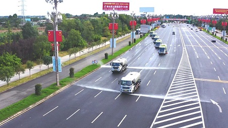 清晨的仁壽大道上,霧炮車噴灑的氤氳水霧,映現(xiàn)出一道清新彩虹;天府大道上,機(jī)械化作業(yè)編隊(duì)有序推進(jìn),留下潔凈路面與和諧的城市韻律;水體公園中,靈活的小型設(shè)備穿梭于碧水藍(lán)天之間,守護(hù)著城市的詩(shī)意棲居,一幅"城在林中、路在綠中、人在景中"的生態(tài)畫卷正徐徐展開。在盈峰環(huán)境的專業(yè)服務(wù)下,大美仁壽,這座千年古城正煥發(fā)時(shí)代新韻。